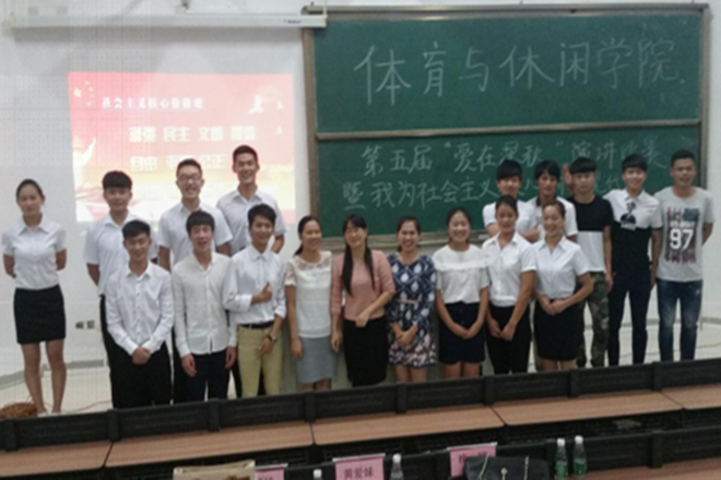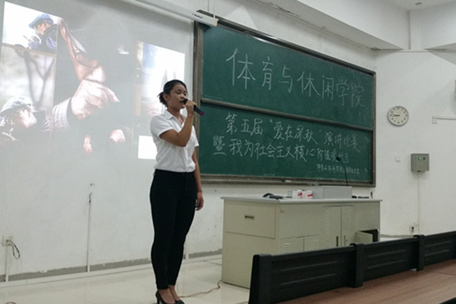 11月24日晚20:00,体育与休闲学院在3106举办“爱在深秋”暨我为社会主义核心价值观代言演讲比赛。马克思主义学院黄爱妹老师、文江玲老师,体育与休闲学院辅导员梅娟老师担任大赛评委。