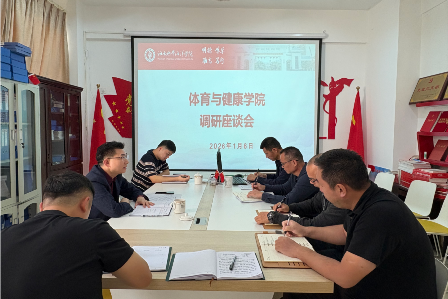 1月6日下午,海南热带海洋学院党委副书记符成彦深入体育与健康学院调研座谈。通过听取汇报、交流研讨,详细了解学院党建、学科建设、师资队伍、人才培养等工作进展,为学院“十五五”规划落地与高质量发展明确方向。